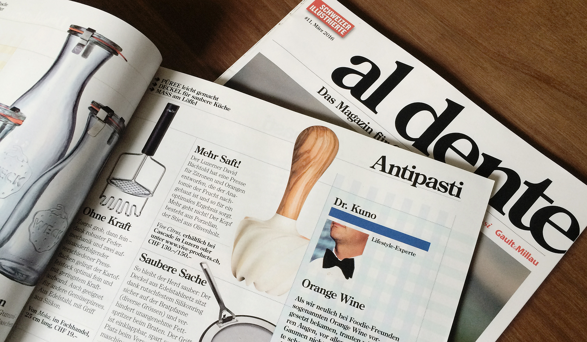 ... und weil selbstgepresster Saft immer noch am besten schmeckt, gibt es eine elegante Möglichkeit, stilvoll zu entsaften: «Vive Citrus» von David Bächtold (www.vive-citrus.ch) …